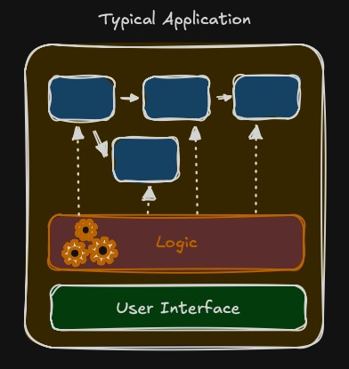 A typical application combines an interface, business logic, and data entities (projects, requirements, tasks, budget etc.).
