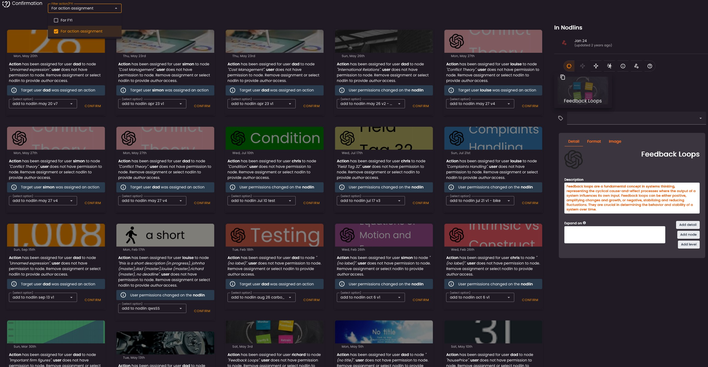 Actions, FYI’s and nodlin permissions