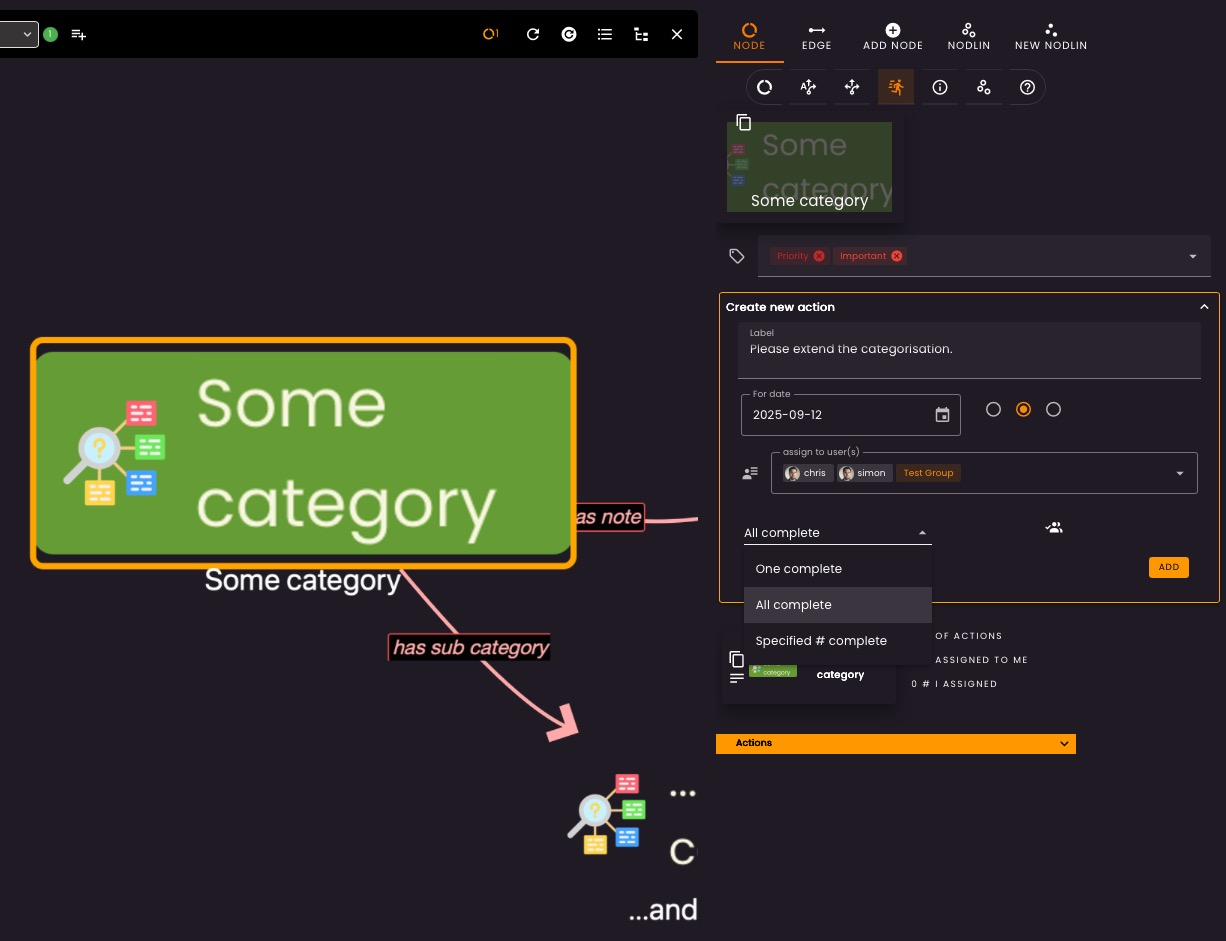 This supports for development of workflow style nodes (e.g. BPMN style) where users can complete steps in the flow, and for following steps to become active with assignments for other users to action.