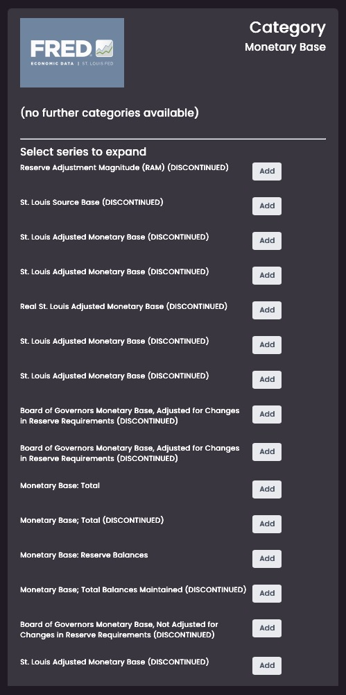 In the following example we have selected the US monetary base data series and applied the date criteria on which we want to review.