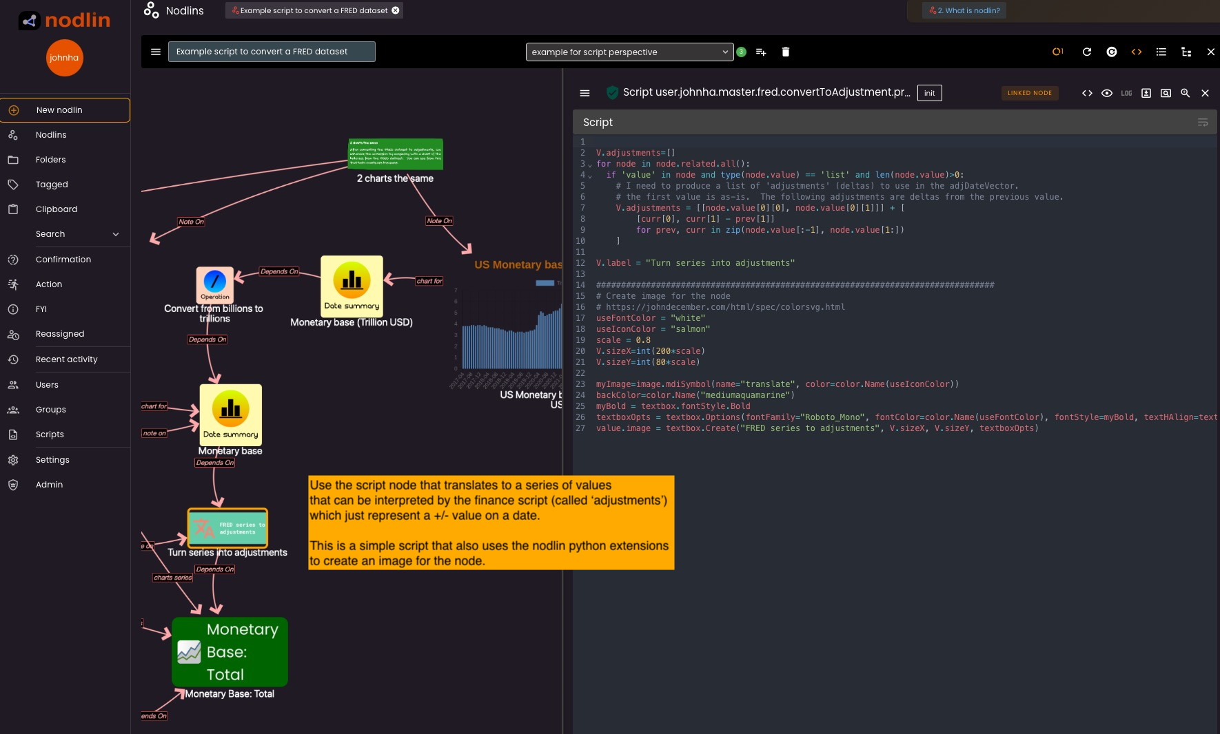 In this example we want to convert the data series into a format for the finance script package. We therefore have a small internal script, and named for re-use by other users.