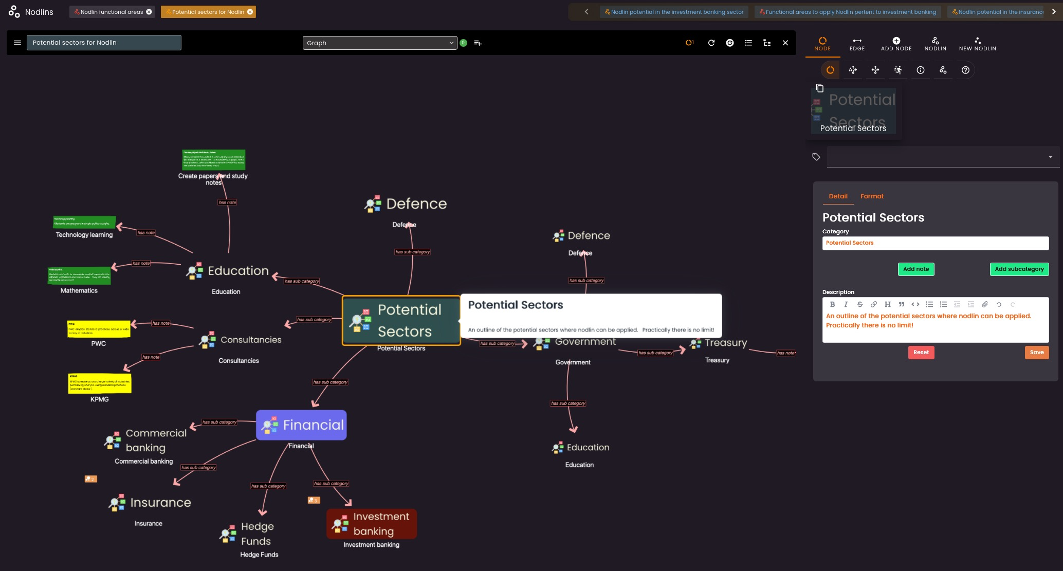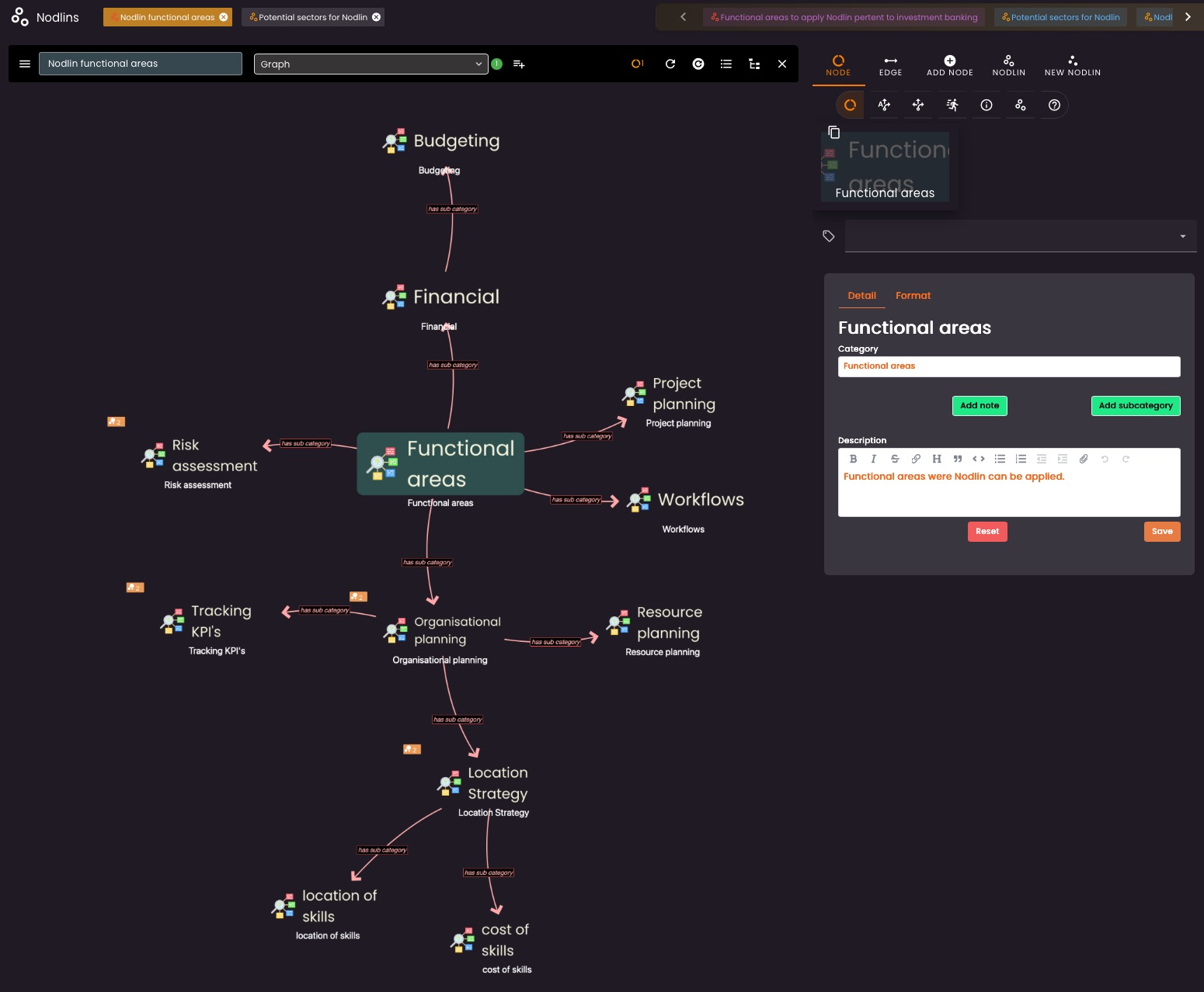 In the following example, we have categorised the functional areas where nodlin can be applied.