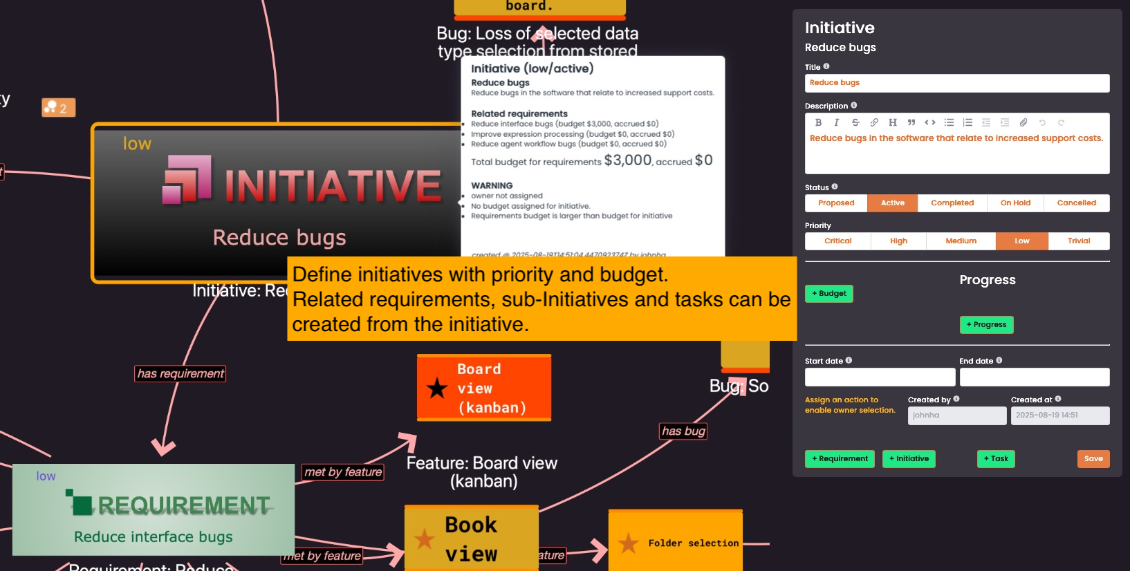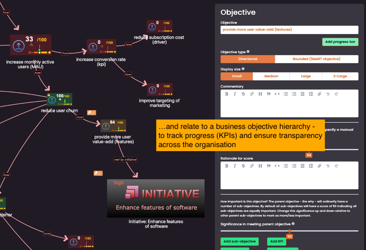 To support front-to-back traceability the initiative can be related to the organisational objectives.